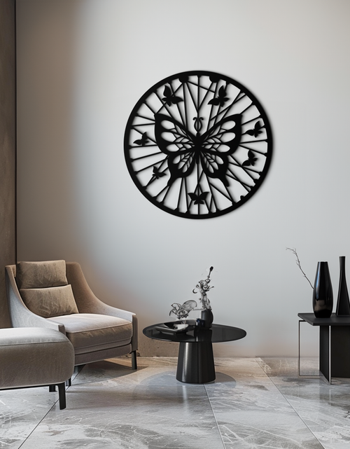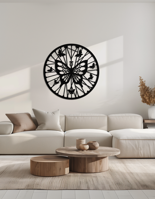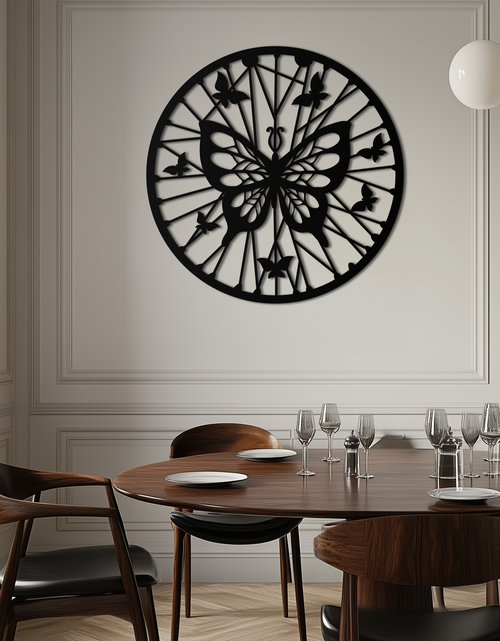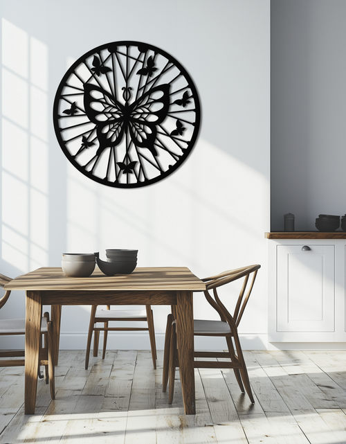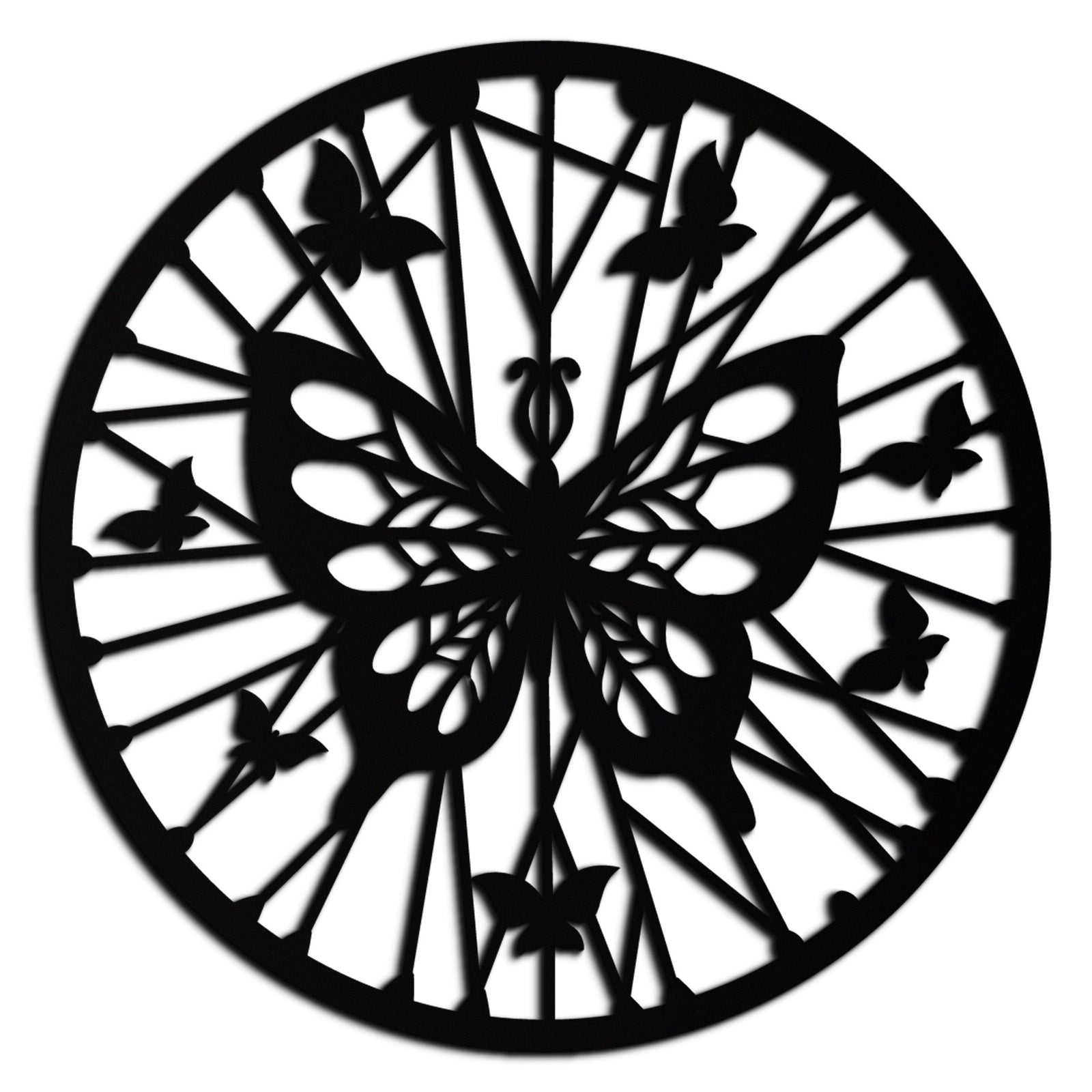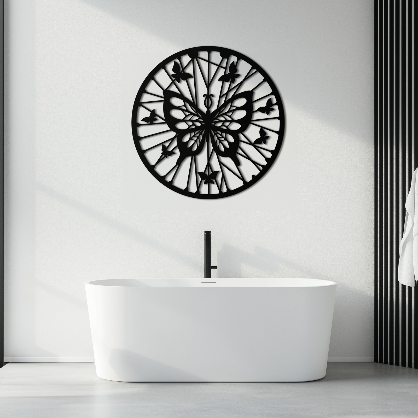 Butterfly Mandala Round Metal Wall Art - Elegant Circle Butterfly Silhouette for Home Decor- KAF322