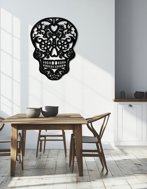 Halloween Skull Metal Wall Art - Intricate Floral Skull Decor- KAF283