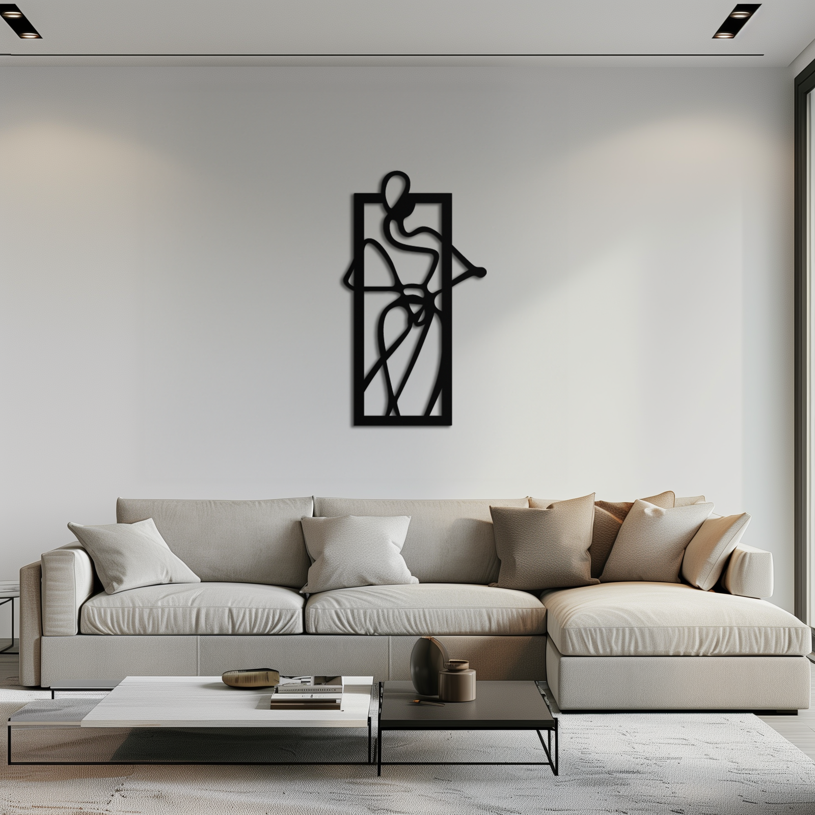 Minimalist Woman Line Art Metal Wall Decor – Abstract Feminine Silhouette Black Steel Artwork for Modern Interiors- KAF437