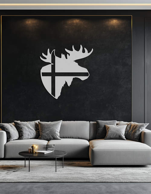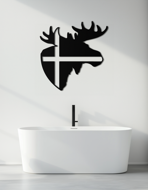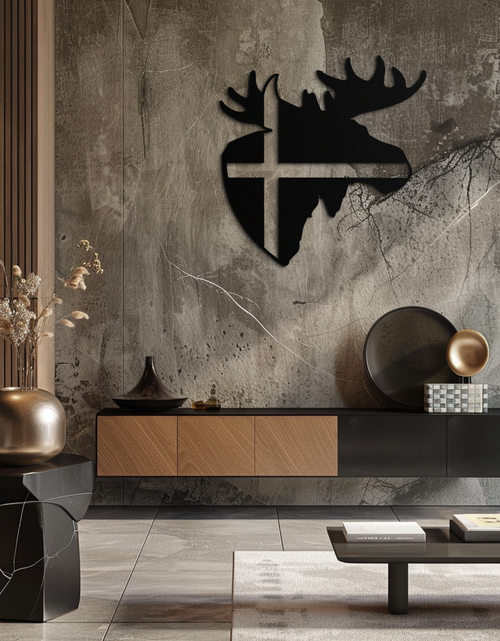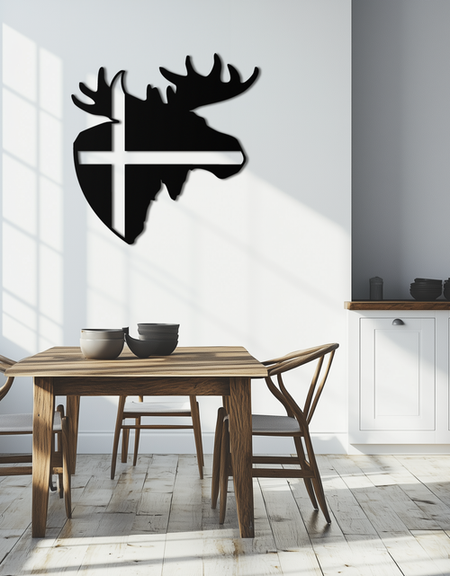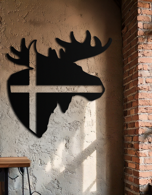 Nordic Moose Silhouette Metal Wall Art – Scandinavian Elk Head with Cross Decor for Modern Rustic Interiors- KAF415