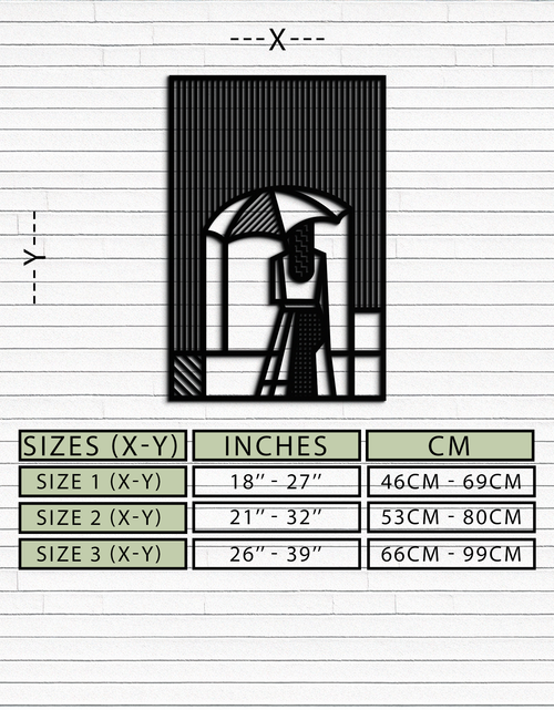 Woman with Umbrella Abstract Metal Wall Art – Modern Rainy Day Silhouette Steel Decor- KAF354